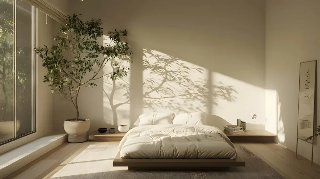 Light moves through these rooms differently. Without clutter to interrupt, sunlight travels across floors and walls, marking time in gentle progressions that you start to notice only after living with the simplicity for a while — the way a patch of warmth moves from the bedside table to the floor between breakfast and lunch. Shadows become part of the design. A room that changes with the day, the season, the weather. Alive.