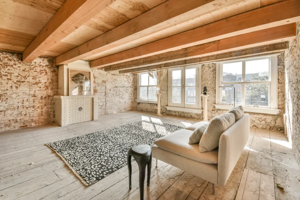 Let older buildings speak. If your home has original features (exposed brickwork, old plaster, timber beams), consider whether they can be uncovered and restored with compatible natural materials. Lime plaster is often the only finish suited to older masonry walls because it allows the moisture movement the building needs.